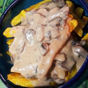 سیب زمینی و پنیر با سس آلفردو